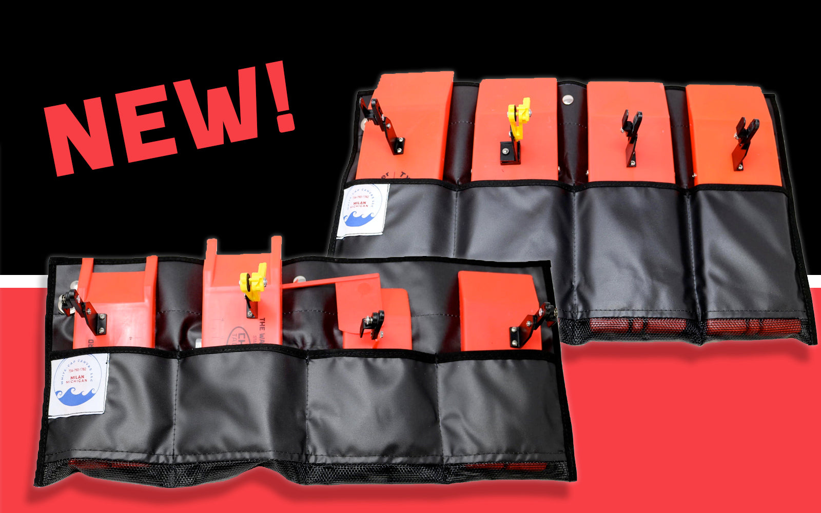 All of our planer boards have a unique rear pin design. You slide your line behind this pin and if for some reason your fishing line slips out of the clip, your planer board will not be lost because the line can't slide out until you release it.